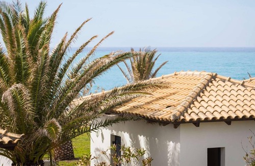 This tranquil two bedroom villa also has sea views. The feeling is a zen like vibe with polished concrete floors and walls and a neutral minimalist decor that keeps it simple and leaves room to chill out either inside or out. A barbecue guarantees al fresco living and the mood is laid back. Lixouri Port, with its popular sea front fish restaurants, cafes, bars and mini markets is a twenty minute drive and the nearest taverna to the complex is a 5 minute drive away, and you are spoilt for choice when it comes to beaches, most of them are powdery sand found down little lanes within this pretty green landscape with olive groves, fields and vineyards scattered about, its one of Kefalonia's best kept secrets - discover it while you can! All bedroom and bathroom linen is included. Bath towels are also provided. This property comes with Free Wi-Fi, Free Air Conditioning, Free Cots, Free Highchairs.