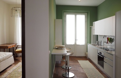 The beautiful penthouse apartment is located on the 5th floor of a building in the style of Italian rationalism and can be reached by elevator except for a few steps in the entrance area.