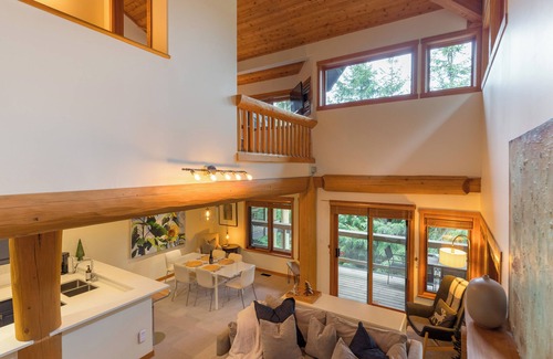 Embodying the charm of a Whistler ski cabin, this open concept 3 bedroom and 2.5 bathroom home features post and beam construction and inviting wooden accents, plus stunning original artwork throughout. Enjoy all the comforts of home in this well appointed space including a fully equipped kitchen, double set washer/dryer, and 75” flatscreen TV. Sit back and relax on the wraparound balcony, soaking up the fresh mountain air.