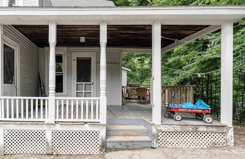 This home sleeps 18 and has plenty of room for everyone with a full kitchen, living room, a gas grill with outdoor seating for an evening meal, and a great wrap-around porch! The home features 6 bedrooms, all located in the upstairs of the home. Bedroom #1 has 3 bunk beds (6 twins), bedrooms #2 and #3 both have full-size beds, bedroom #4 has a queen-size bed, bedroom #5 has a bunk bed (2 twins) and a queen bed, and bedroom #6 has a queen bed. There is a full bathroom on the main floor and upstairs. Please note, the house does not have heat or air conditioning. There are electric heaters (x3), celling fans, and portable fans in each room. This is a pet-friendly home!