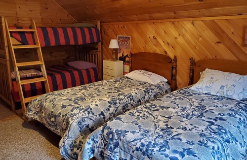 #3 upstairs bedroom-1 set of bunk beds & 2 single beds.