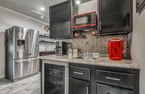 We have a fully furnished 4 bedroom with 2 full bath property. The house is very open and wonderful for entertaining. The kitchen and coffee bar is fully stocked with the essentials. Kitchen has a gas range as well as a very stocked spice cabinet and all the cooking basics you could need (sugar, flour, oils, etc.)