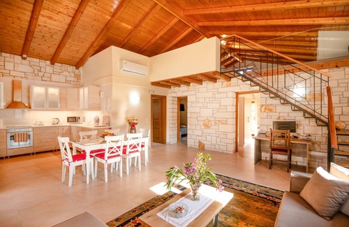 Strategically positioned approximately 1.1 km from the popular Almyros beach, Villa Sofia-Stella is a spacious stone-built house designed to accommodate families or groups of 4 adults and 3 children. The generously sized interior welcomes you with stone walls, a fully equipped kitchen, a dining space, and a modern living area. Ascend the interior staircase to discover a spacious attic with one double and one single bed, ensuring ample space for relaxation and enjoyment, specifically catering to the comfort of children.