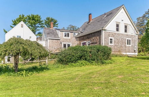 1864 FARMHOUSE restored in 2023. 3-4 BR, 3 FULL BATHS, SLEEPS 8 on 3.21 acres, surrounded by forestry. Stay in personal home of designer/owner of Redneck Revivals and author/screenwriter of “GaslightHarmonies“. 2 miles to ocean. Dogs/cats welcome. Skiers? 20 min to Camden Snow Bowl, 2.5 hours to Sugarloaf, Sunday River & Saddleback, 1.5 hours to Portland & Bangor airports. Open pastures and FENCED AREA for little ones and dogs to safely play. Huge trees for climbing. BACKYARD FORESTRY-Wildlife watching, hawks, eagles, owls, deer, turkey. Stunning sunrises & sunsets, sun all day. Sunbathe in hammock & BBQ/grill on back deck. Unobstructed Stargazing, firefly watching, campfires at night. Minutes to top restaurants, Primo, Lost Kitchen. Surrounded by roadside farmstands for organic eggs, milk, cream, fresh off the farm treats. House is supplied with everything: linens, towels, soaps, shampoo, fully equipped kitchen including fresh coffee, tea, cooking/baking spices/oils/butter, washer & dryer with laundry detergent. Come stay and live the life as a “Fancy Farmhand” off the grid, out of gridlock and away from the grind.