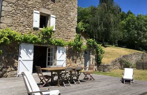 Selves is a stone farmhouse set in a hamlet 2 km from the medieval village of Espeyrac which is on the pilgrims' route to Santiago. Espeyrac has a shop, restaurant / hotel. The house has a large and beautiful south facing garden with stunning views across the Aveyron countryside. The pool is 11m x 5m. The four storey house has been restored in the last three years. There is a large kitchen with an ancient refectory table, fridge, double sink and dishwasher, gas hob and electric oven There is a good size sitting room with a large fireplace with antique furniture. There are two double bedrooms and two bathrooms. There is a large attic room which sleeps three (3 singles or a double and single). People who stay in Selves fall in love with the place. Its main attractions are the the setting and the outstanding beauty of the countryside . Activities: Walking, canoeing, interesting and beautiful places to visit such as Conques, Figeac, Entraygues sur Truyere, the local town. Internet +TV.