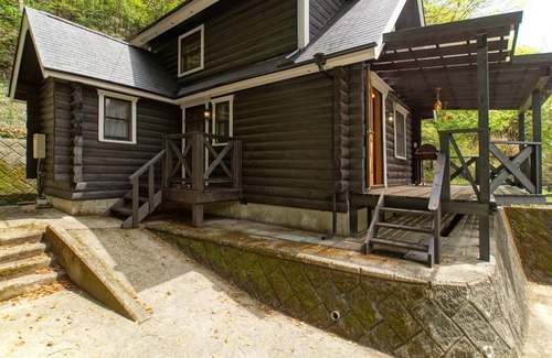 This is a private log house located in front of Matsukawa Lake