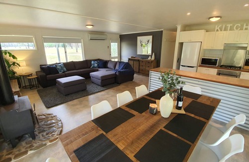 There are three comfortable queen bedrooms in the main house and a separate barn adds extra space with its own queen bedroom, a simple bathroom and a large laundry. This makes it great for bigger groups or families who need a bit more room