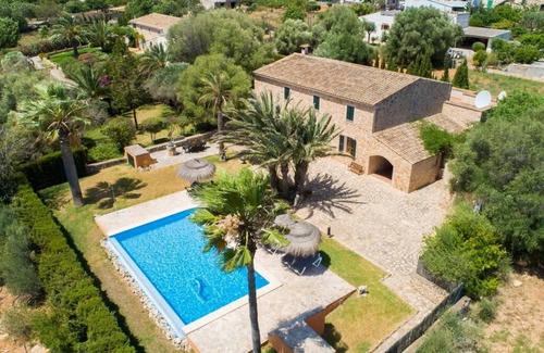 Finca S´Horta enjoys a quiet location on the outskirts and is within easy walking distance to the charming village of S'Horta. Spacious accomodation of high quality, 3 bedrooms and 3 bathrooms, very nice pool area surrounded by terraces and lawn. Distant seaview, 5 carminutes to beaches and Cala D'Or.