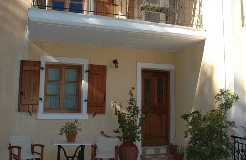 Located in Fiscardo , Fioroula's Villa Fiskardo sleeps 6. The 85 sq m ground floor has got an open plan sitting room decorated with a combination of modern and traditional furniture. An impressive 19th century buffet is standing just in front of the main door. There is also a dining area, kitchen , a bathroom with toilet and washing machine), a big veranda, and a big open space outside surrounded by forest.