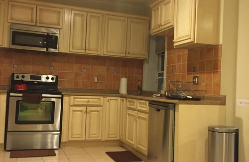 It is an excellent option for travels who like a Furnished, spacious and bright place to stay. This First level of the house includes two private bedroom and one bath, Stainless steel kitchen amenities ( Big refrigerator, oven, and dishwasher, Toaster and coffee maker,...). That is what every body appreciates. The private pathway on the back yard is a plus which guides you to your own private entrance door. There is a FREE Wifi, and cable Tv available to enjoy your stay.