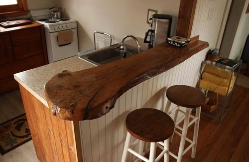 One of the original cottages built on Burr Oak Lake, Fisherman's Cottage sleeps up to 6 people comfortably in beds. The top level features a new bathroom with shower/tub, full kitchen, dining table, beautiful live-edge oak bar, and seating area. The top-level bedroom has a very comfortable full-size futon and twin bunk. Large enough for a couple to sleep well, or makes a great sleeping quarters for three kids.
