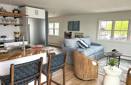 Fisherman's Oasis is a two bedroom, two bathroom home that sits directly on the St. Lawrence River, overlooking the marina in downtown Clayton. When you enter the home, you'll be greeted by large windows that let in natural light. As you pass the main suite and guest bedroom, you'll enter a large, open-concept kitchen. Situated above a local favorite, The Clayton Popcorn Company, and steps away from the shops and restaurants, including the 1000 Islands Harbor Hotel. On the deck, you'll enjoy watching wooden boats and freighters go by!