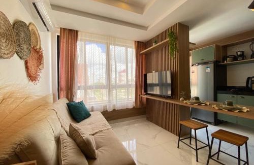 A 7-minute walk from Intermares Beach in João Pessoa, Flat Intermares offers accommodations with access to a fitness center, solarium, and open-air bath. Guests are welcome to go for a swim in the rooftop pool. The apartment also features free Wifi, free private parking, and facilities for disabled guests. The air-conditioned apartment consists of 1 bedroom, a living room, a fully equipped kitchen with an oven and a kettle, and 1 bathroom with a bidet and a hair dryer. Guests can enjoy a meal on an outdoor dining area while overlooking the sea views. The apartment offers bed linen, towels, and laundry service. For those times when you'd rather not eat out, you can cook on the barbecue. For guests with children, the apartment provides a baby safety gate. Kids pool is also available at Flat Intermares, while guests can also relax on the sun terrace. Train Station is 8 miles from the accommodation, while Joao Pessoa Bus Station is 8.6 miles from the property. Presidente Castro Pinto International Airport is 13 miles away.