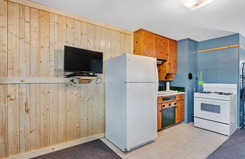Inside, find all the comforts of home in an inviting space. The well-equipped kitchen boasts a full-size refrigerator, electric range, microwave, and coffee maker – perfect for fueling your mountain pursuits. After a day of outdoor excitement, gather around the firepit for s'mores, or unwind in the living room with free WiFi and a good book. When night falls, two plush double beds ensure restful sleep before tomorrow's adventures.