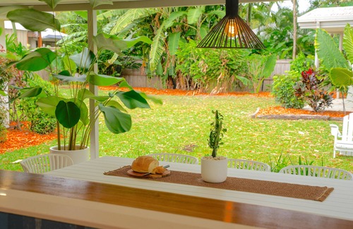 Four Palms boasts tropical lush vibes, comfort and style. Just one street back and less than a 10 minute stroll from the golden sands of Trinity Beach, Four Palms is the perfect getaway for families, friends or couples. And especially for guests travelling with pets, this is the ideal property with lush backyard and only moments from dog friendly walk paths.