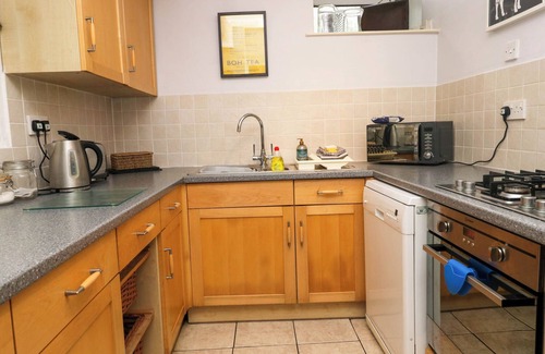 Amenities: Gas central heating. Underfloor heating. Electric oven, gas hob, microwave, fridge, washer/dryer, dishwasher. Smart TV, WiFi. Fuel and power inc. in rent. Bed linen and towels inc. in rent. Travel cot and highchair available. Roadside parking. Patio with furniture and barbecue. Two well-behaved pets welcome. Sorry, no smoking. Shop 0.4 miles, pub 0.5 miles, river 0.1 miles