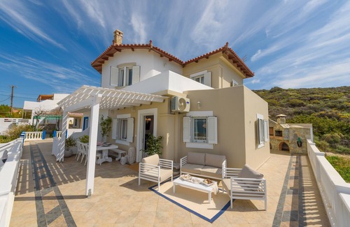 Full view in a luxury house beside the beach-Crete has 3 Bedrooms , 2 Bathrooms, and max occupancy of 6 people. The minimum rental for this property is 1 nights, but this can change depending on the season you plan on staying. Previous guests have given good rated it, and VRBO labeled it a top-rated Villa because of the excellent services rendered by the owner or manager of this Villa, and has consistently provided great experiences for their guests. Most families or guests that use it recommend it to their friends and some of them are repeat guests. Villa has a friendly neighborhood, and the Neo Kalamaki has interesting places to visit. If you want to learn more about the Villa in Neo Kalamaki, such as places to visit and things to do nearby, you can check below to learn more.