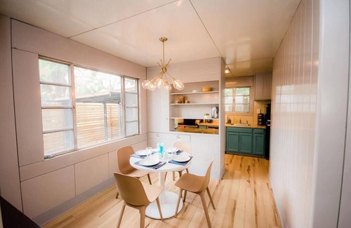 Fully fenced in backyard. This retro 1948 all metal Lustron home has been restored to its mid-century glory! With 1 king bed and 2 twins the house easily sleeps 4 but can accommodate 5 if someone is willing to take the couch! Located within walking distance of Donut Hut and La Michoacana tacos and a few blocks away from dozens of other restaurants. Lucille the Lustron includes complimentary streaming services. Centrally located on a safe and quiet street, easy to reach downtown or the suburbs.