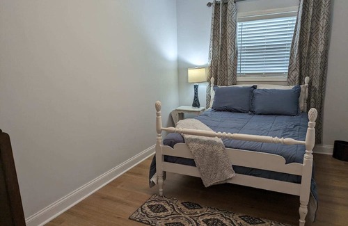 Your Kannapolis adventure begins at this 3-bedroom house. Step inside and you'll find a pleasant and fantastic space that's perfect for your stay. The bedrooms offer comfortable accommodations with a queen bed with new mattress and full bathroom. Second bedroom has a full bed, also with new mattress . And the third bedroom has a sofa bed, and spin bike with a TV. Forget about packing your iron, hair dryer, or even a washing machine because we've got you covered. Stay connected with WiFi and keep cool with AC. We hope you'll enjoy your stay at our newly renovated house which includes new floors, kitchen, and paint.