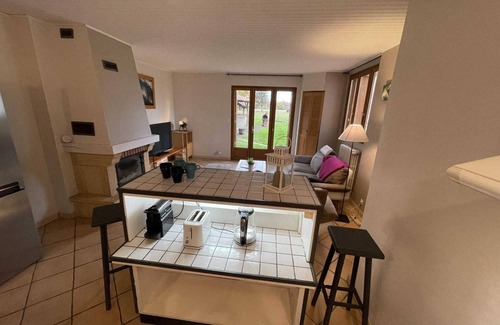 On the road to the Pyrenees, you can relax and be 2 km from the village of Bérat (shops, restaurants, and the Bérataise beer brewery), 6 km from the Savères fishing lake, 10 km from the Via Garona hiking trail (Path of Saint James), the Carbone WakePark spring (water activities), Lake Bure, Lake Sabatouse, and the Tépacap adventure park, 17 km from one of the most beautiful villages in France, Rieux-Volvestre, and 20 km from Muret (train station, Aqualudia, cinema, and Horizon Pyrénées seminar room). You will enjoy the shared swimming pool, located in the heart of the property, and outdoor games (ping-pong, bowling alley, badminton). Semi-enclosed lawned grounds, private parking area. A mini-farm on site with small animals and the donkeys Anémone and Peluche. This cottage is adjacent to the owners' home but has independent access; a second cottage is located on the same property. On the ground floor: living room with equipped kitchen, 1 bedroom (140cm double bed) with bathroom (sink). Upstairs: 1 bedroom (3 90cm single beds), shower room, and toilet. Central heating included. Wi-Fi internet access.
