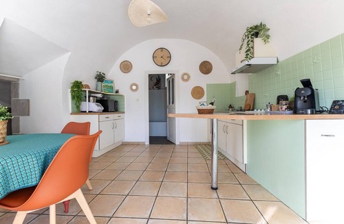In the heart of the peaceful village of Aydat, discover this atypical studio nestled in an old vaulted cellar, completely renovated to combine old-world charm and modern comfort. This intimate cocoon offers a unique atmosphere, conducive to rest and escape. As soon as you arrive, you will be transported by the character of the stone vaults and the warm atmosphere of the place. An ideal space to disconnect, as a couple or with family, and enjoy a quiet stay. You can enjoy an outdoor terrace furnished for your moments of relaxation, with a wooden table for your outdoor meals and the possibility of a barbecue on request. Located just a 5-minute drive from Lake Aydat, you will easily access a variety of activities such as swimming, water sports, and hiking trails. Explore the Auvergne Volcanoes Park, with must-see sites such as the Puy de Dôme, Vulcania, and the Sancy mountains. The studio is composed on the ground floor (5 steps to access the living room): - an equipped kitchen - a living space with living room open to the sleeping area (160 bed and sofa bed for 2 additional people) - a bathroom with WC Whether you are a nature lover or looking for rest, this studio with authentic charm will offer you a memorable stay in the heart of the green landscapes of Auvergne! Secure space for bicycles