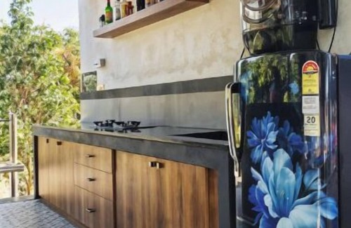 Kitchen: An open kitchen layout is fully equipped with modern appliances such as a gas stove, refrigerator, kettle, and water filter/RO, allowing guests to prepare light meals or enjoy the ala carte menu.