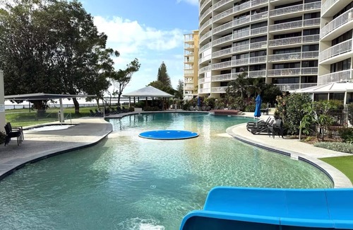 Welcome to your Golden Beach getaway! Located on the second floor of a quiet complex, this apartment offers stunning views of the swimming pool from a spacious balcony and a glimpse of the ocean. Perfect for couples or small families, this well-appointed space is designed for relaxation and comfort.