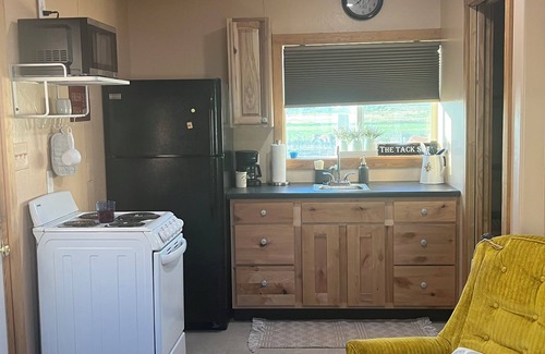 Furnished & clean tiny home in the country yet minutes from biking trails, I-70 and Country Jam. Just a few minutes away from Mack's Ridge Trail, Kokopelli Trail, Troy Built and more. Gas, convenience store and restaurant in Loma which is 8 minutes away. Famous Fruita is 15 minutes away and has all the amenities including the Strayhorn Grill Steakhouse. This tiny home is newly remodeled, away from the road and is surrounded by all the things the country offers - great sunsets, country smells :), horses and colts, chickens and roosters. The home is set away from the main house on the property and provides a great deal of privacy. Plenty of room for your car or truck. Inside provides all you need for a comfortable stay; double bed, comfy chair, TV, stove, full size refrigerator, cupboards and sink. Plates, dishes, glasses, pots and pans are provided for your convenience. Bathroom has a full size shower, toilet and sink. Linens and hair dryer are provided.
