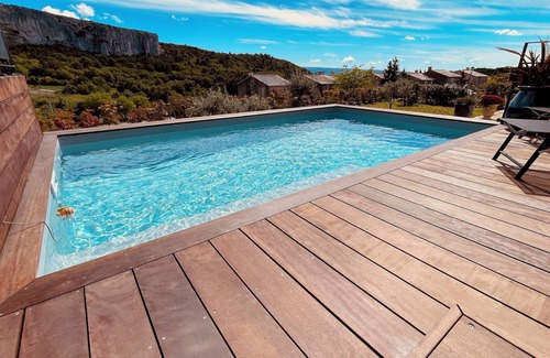 Yes, this Lioux house has a swimming pool. Check the Facility Overview section for details about the pool and other available facilities.