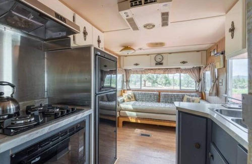 Vintage trailer, sparkling clean with space to have a campfire, stargaze and enjoy the quiet of central Oregon. Watch the sunrise over Smith Rocks and go climbing or hiking or kayaking or biking... or do it all in a day.