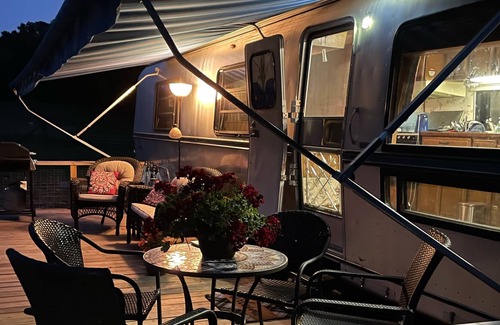 Park your car right next to the camper. Do your morning yoga practice on the deck. Sit out under the awning and enjoy an afternoon beverage by the grill. After dark, build a small fire in the communal firepit and watch the moonrise.