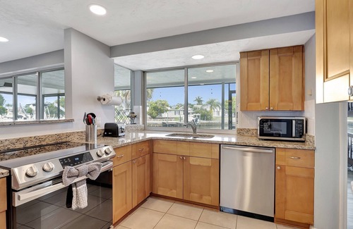 🍳 A fully equipped, modern kitchen — stainless appliances, plenty of counter space, cookware, utensils; ideal for cooking your favorites or enjoying local catch