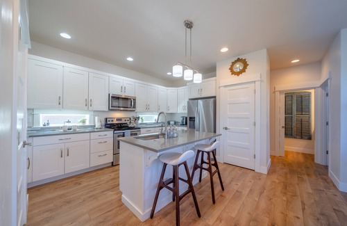 The beautiful modern kitchen with stainless appliances and full laundry room with a new washer and dryer will help you to either cook whatever you need at home or clean up for going out!