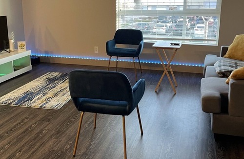 This beautiful fully furnished private apartment with an attached garage is a rare find. The high ceilings and large Ceiling to floor windows would get your heart! It’s located by lots of great stores, restaurants and hotels. It’s just a minute away from the highway and inside a great community. This building comes with codes for both outdoor and front door entrances. 24 hour fully equipped gym with an outdoor pool and hot tub! The gardens are so beautiful to walk in and lots of walkways for an early soak of the sunrise. Located just 15-20