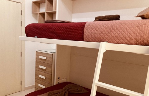 Relax with the whole family at this peaceful place to stay. It's a 3 bedroom apartment with sea views and infront of a a public garden.