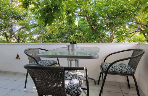 A quiet and pleasant apartment with all amenities, overlooking nature, and just 200 meters from Politika Beach and its taverns. The apartment complex is situated on a plot with walnut trees and a large pine tree that dominates the surrounding area as you enter. This pine tree was planted many years ago by the owner’s grandmother, adding a unique history and character to the place.