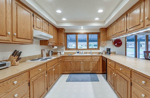 MAIN FEATURES: Deck, gas grill, wood-burning stove, private yard, Smart TVs, dining table, books