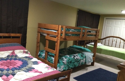 Located on Lake Huron with a great sandy beach. Step out onto a grassy back yard, but don’t stop there. Continue to the great sandy beach where you will have many happy memories spending time with your family. Catch a perfect sunrise from the comfort of the living space. Enjoy a shoreline kayak trip or bounce around on your private large floating pad. WiFi ,Netflix, Disney and many more indoor TV intertainment, as well as a basement game room, including pool, ping pong and foozeball. Although you may not have time for indoor entertainment when you are enjoying the Sunrise Side of Lake Huron.
