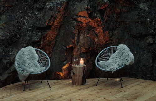 Outside, guests can enjoy the same views and while forest bathing andstargazing from 2 sunken plunge baths outfitted with hot and cold water to suit individual tastes and a large private deck that traces the jagged edge of a cliff face of moss-covered stone and ferns.