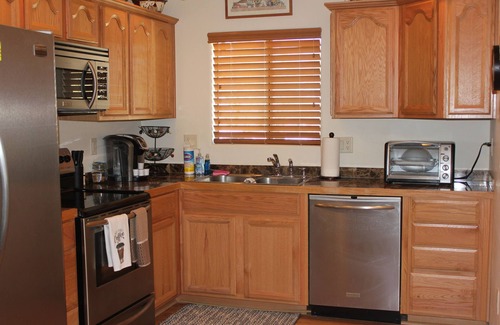 Kitchen is fully stocked for your convivence along with a full size laundry room with a washer and dryer. Two bedrooms with queen beds, free cable TV and wifi. Bathroom is also handicap accessible. We hope you enjoy your "home away from home". Long-term snowbirds are welcome.