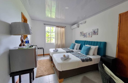 Nestled in Providencia, this 3-bedroom, 3-bathroom vacation home brings it all within your reach. Fans of nature and the outdoors will love being 6 minutes by foot from Old Providence McBean Lagoon National Park and 10 minutes from Crab Cay. Make short work of the 2-minute drive to Bridge of Love or the 6-minute drive to Almond Bay.