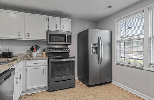 This modern townhouse is perfect for entertainment! Its huge deck has plenty of space for family fun or events. Inside features a cozy sitting area, dining area, and a work or study space with full size desk. This home easily sleeps 5 people! Its located 10 mins from Hampton University so it's great for homecoming! 5 mins from shopping, dining and entertainment. If you like to travel just a little farther, it's 20 mins from the beach!! You are sure to a have a fun filled or relaxing getaway!
