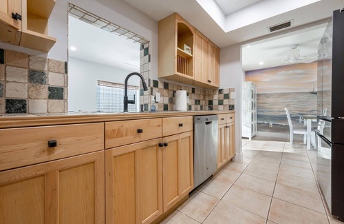 Take it easy at this unique and tranquil getaway. Close to the beach, restaurants, shopping, pharmacy. Downtown is 11 miles away. Fully updated with new kitchen, bathrooms, bedrooms, and much more. House will comfortable sleep 6 adults and kids. It has all you need to enjoy your vacation.