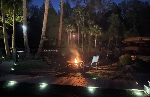 This newly renovated waterfront home is a boating and nature lovers paradise. It includes a boat house with attached game room, screened pool, screened wrap around porch, fire pit, private playground and 6 kayaks. All with beautiful views of the river and preserved state lands. Take a kayak ride 20 minutes to the springs to enjoy the manatees and dolphins. Stop in at a restaurant overlooking the water on the way. You will also enjoy the inside of the home with updated appliances, fully stocked kitchen, smart TV’s, board games and stylish furnishings. Please note: It’s necessary to pass under the Halls River Bridge in order to get to the gulf. The bridge has a 6 foot clearance.