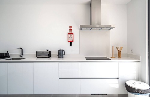 Prepare a home-cooked meal in the kitchen, complete with an oven, a stovetop, and a refrigerator, as well as a coffee maker, an electric kettle, and a microwave. Bathroom amenities include a hair dryer, a bidet, and towels. And because there's access to laundry facilities, you can go a bit lighter on your packing. Other amenities include bed sheets, an ironing board, and air conditioning.