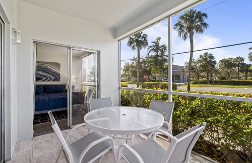 First floor apartment with community pool! Enjoy a stylish experience at this centrally-located condo in the heart of Stuart. If you are a foodie you will have many dinning choices, some you can even walk to! 2 miles outside of downtown, 10 minutes to Stuart Beach. Screened patio with table and chairs for dinning or just enjoying the outdoor space.