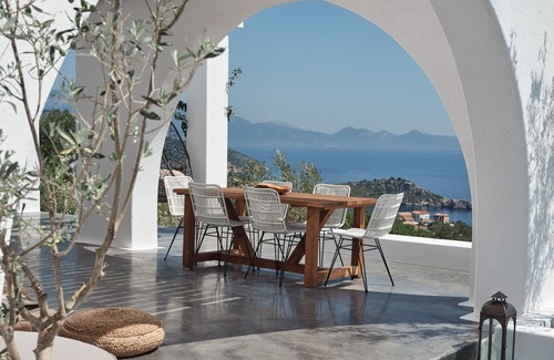 Designed around a breathtaking glass courtyard this villa is exquisitely designed and beautifully furnished. Maia and Antilia have three tranquil and spacious bedrooms all with their own ensuite bathrooms and private terraces. The open plan kitchen/living room is filled with light with large, folding glass doors opening up to onto the generous ocean view terraces. Here you will find a well-equipped kitchen, flat screen TV and DVD player along with a selection of DVDs, games and books.