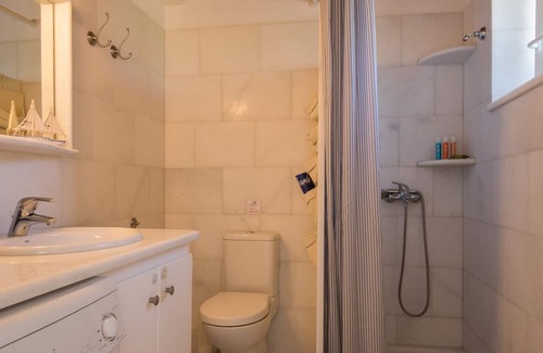 It has a shaded terrace with fabulous sea views where you can eat al fresco or enjoy cocktails under the stars with the lights of Naxos island flickering across the sea.