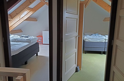 The Korebloom (Cornflower) holiday home is suitable for up to 14 people. On the 1st and 2nd floor there are 7 bedrooms, 2 bathrooms with bath, shower and toilet and two washbasins. The bathroom on the 1st floor has no toilet but a separate toilet is located next to it. The bathroom on the 2nd floor includes a toilet.