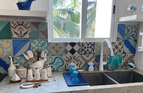 Increíble Villa recién remodelada en la costa yucateca. 3 habitaciones con todo lo necesario, cada una con baño. Cocina y comedor en la primera planta súper equipada con una terraza social (incluye camastros, sillas de playa, toallas de playa), baño de visitas y piscina privada. En la planta alta habitación principal con tina, cuenta con una terraza con hamaca para 2 personas, mecedoras y cadena de luces teniendo así el lugar perfecto para observar el cielo estrellado. La recámara principal, la secundaria y el comedor cuentan con televisión. Todas las áreas tienen aire acondicionado. Wifi. Cerradura digital para no preocuparse por la entrega de la villa. La entrada es a partir de las 3 de la tarde y salida antes del medio día.